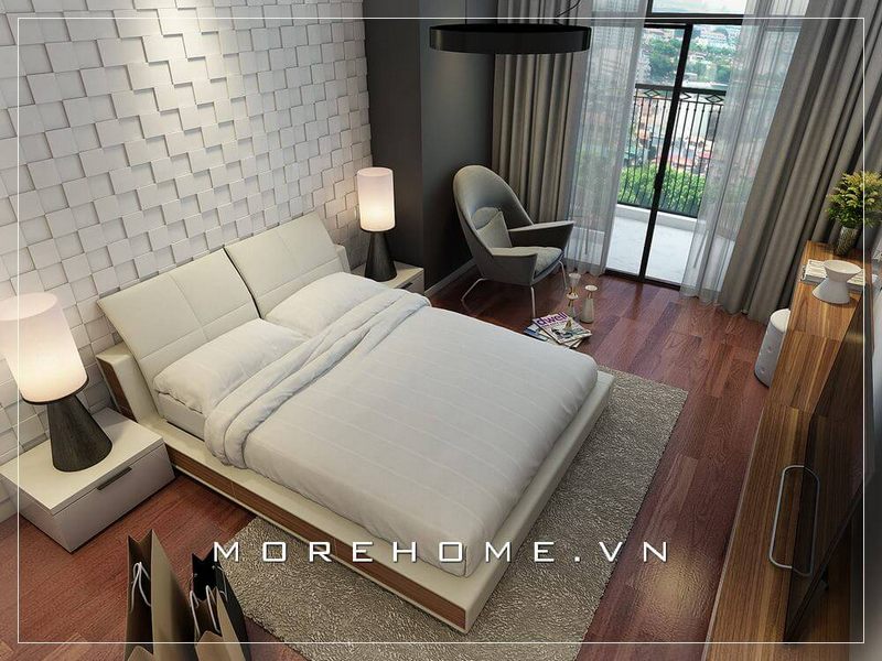 Giường ngủ gỗ công nghiệp hiện đại bọc da đầu giường sang trọng tạo điểm nhấn ấn tượng cho không gian phòng ngủ