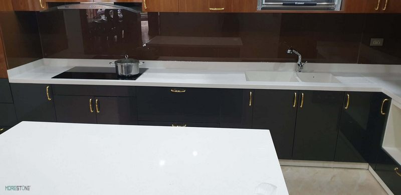 Bàn ăn được làm từ đá nhân tạo cao cấp.